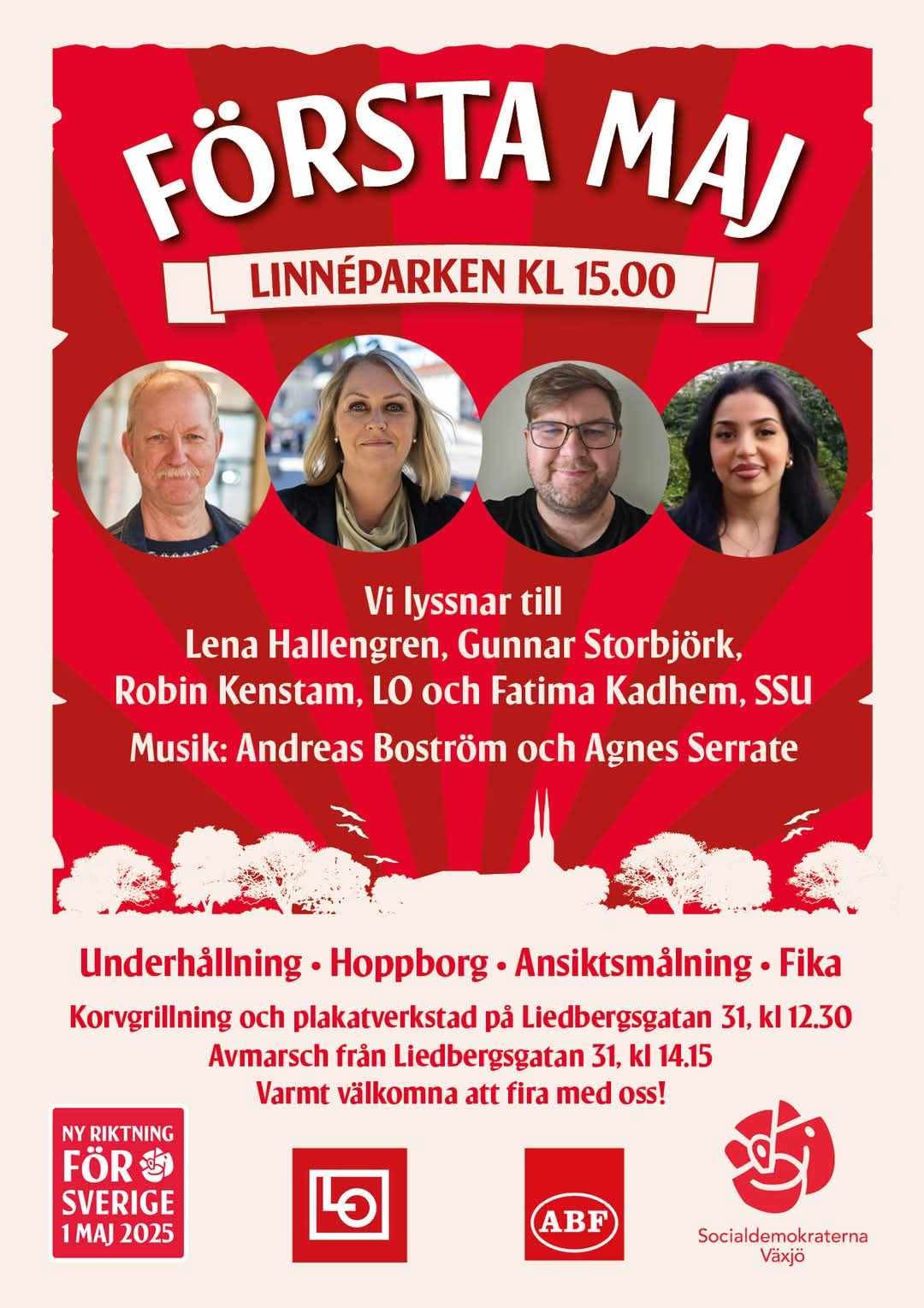 Här finns en sammanställning av 1:a Majfirandet i avdelningens kommuner, Alvesta, Ljungby, Markaryd, Tingsryd, Växjö och Älmhult.