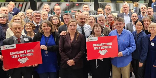 Många vill visa sitt stöd och sin solidaritet till IF Metall i konflikten med Tesla. Senast passade styrelsen för EFS (Europa-LO) på att skicka hälsningar både via film, bild och ett uttalande.