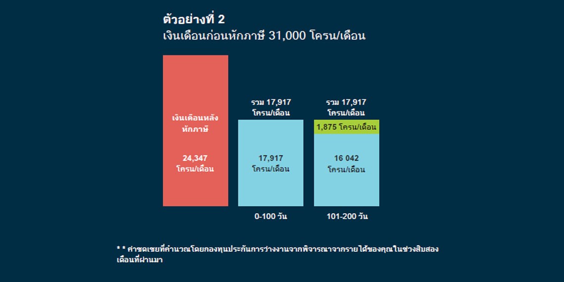 ใคร ๆ ก็สามารถตกงานได้ การประกันรายได้ของเราเป็นส่วนเสริมของกองทุนประกันการว่างงาน ซึ่งช่วยเพิ่มความมั่นคงทางการเงินให้กับคุณที่กำลังมองหางานใหม่ โดยสรุปแล้วคุณสามารถรับรายได้ชดเชยได้สูงสุด* 80 เปอร์เซ็นต์ เป็นเวลาสูงสุด 100 วัน หากคุณว่างงาน