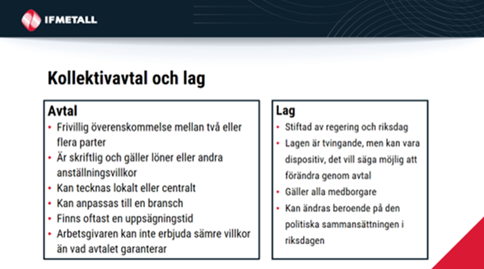 Kollektivavtalet är en överenskommelse mellan den fackliga organisationen och arbetsgivarna.