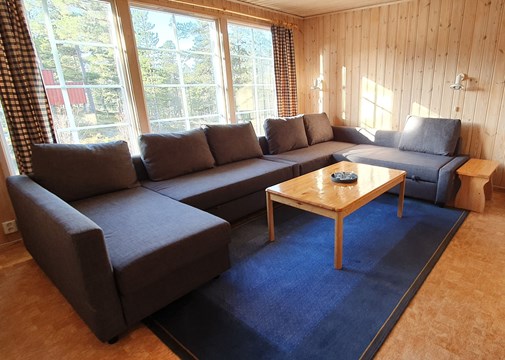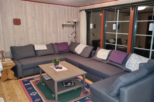 Stuga A ca: 67 m² Husdjur tillåtna. (6 ordinarie bäddar + 2 extra bäddar i bäddsoffa ute i uppvärmd gäststuga)
