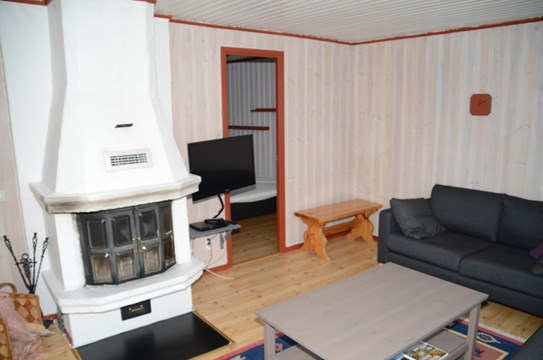 3 sovrum varav ett med dubbelsäng (140cm), de andra har våningsängar. Kök med spis, ugn, diskmaskin, mikrovågsugn och badrum med tvättmaskin och torkskåp. Vedkamin samt TV (Lokalpaket Företag från Canal Digital) med DVD/Blu-ray. Chromecast samt Wi-Fi via ADSL.