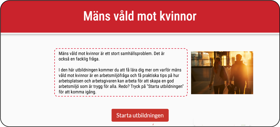IF Metalls webbutbildning om mäns våld mot kvinnor hjälper dig som förtroendevald att snabbt skaffa dig nödvändiga kunskaper och verktyg för att lyfta frågan i det vardagliga fackliga arbetet. Utbildningen tar bara 15 minuter. Klicka på bilden för att komma igång.